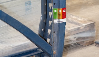 Tijdens de keuringen uitgevoerd door Mecalux zal de algemene staat van de stellingen gecontroleerd worden en zullen delen die eventueel beschadigd zijn geïdentificeerd worden aan de hand van controle stickers.