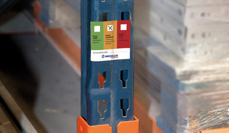 Tijdens de keuringen uitgevoerd door Mecalux zal de algemene staat van de stellingen gecontroleerd worden en zullen delen die eventueel beschadigd zijn geïdentificeerd worden aan de hand van controle stickers.