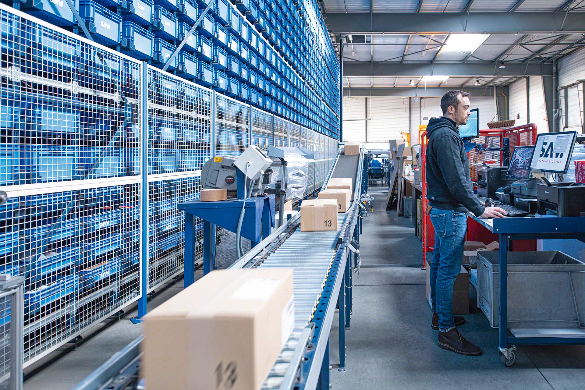 Automatisering van de verplaatsing van dozen, kratten en lichte lasten in het magazijn