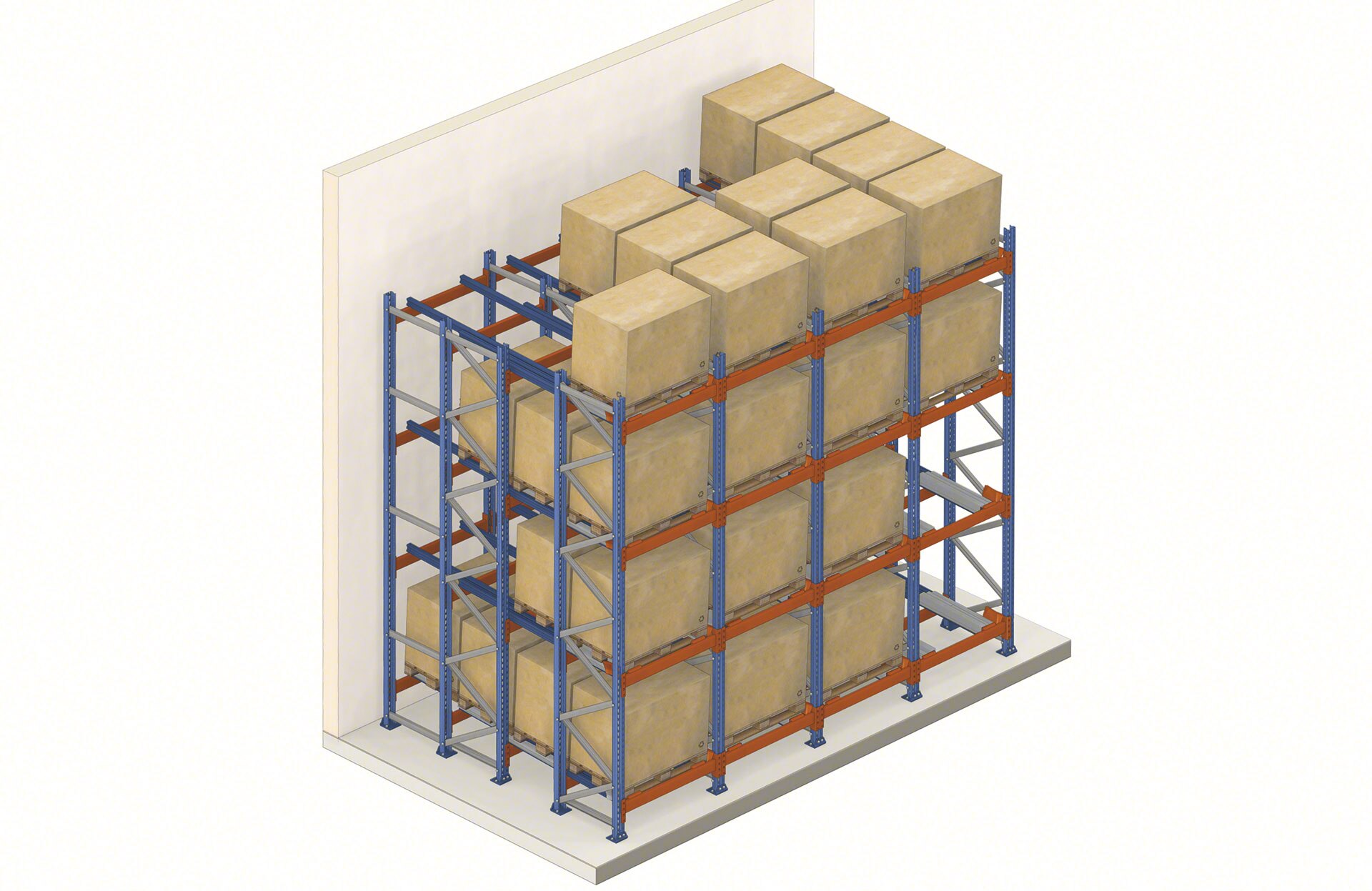 Pushback stellingen zijn een zeer eenvoudig opslagsysteem met groepering, waarbij in elk kanaal een ander SKU kan worden ondergebracht. Vorkheftrucks hoeven niet tussen de stellingen door te rijden, aangezien zij de goederen in het gangpad afzetten en eruit halen. Hierdoor worden de manoeuvretijden verkort en de operationele veiligheid verhoogd. Deze stellingen worden echter beperkt door de diepte van de kanalen en de hoogte. Het systeem kan worden ingericht met maximaal vier en zes pallets diep (afhankelijk van de gekozen variant, geleiders of rollen) en met een maximale hoogte van 7,5 m. Als een grotere capaciteit en hoogte vereist zijn, heeft Mecalux ook andere oplossingen voor opslag met hoge dichtheid, zoals het Pallet Shuttle systeem, waarvan de kanalen bijvoorbeeld meer dan 40 m diep kunnen zijn.