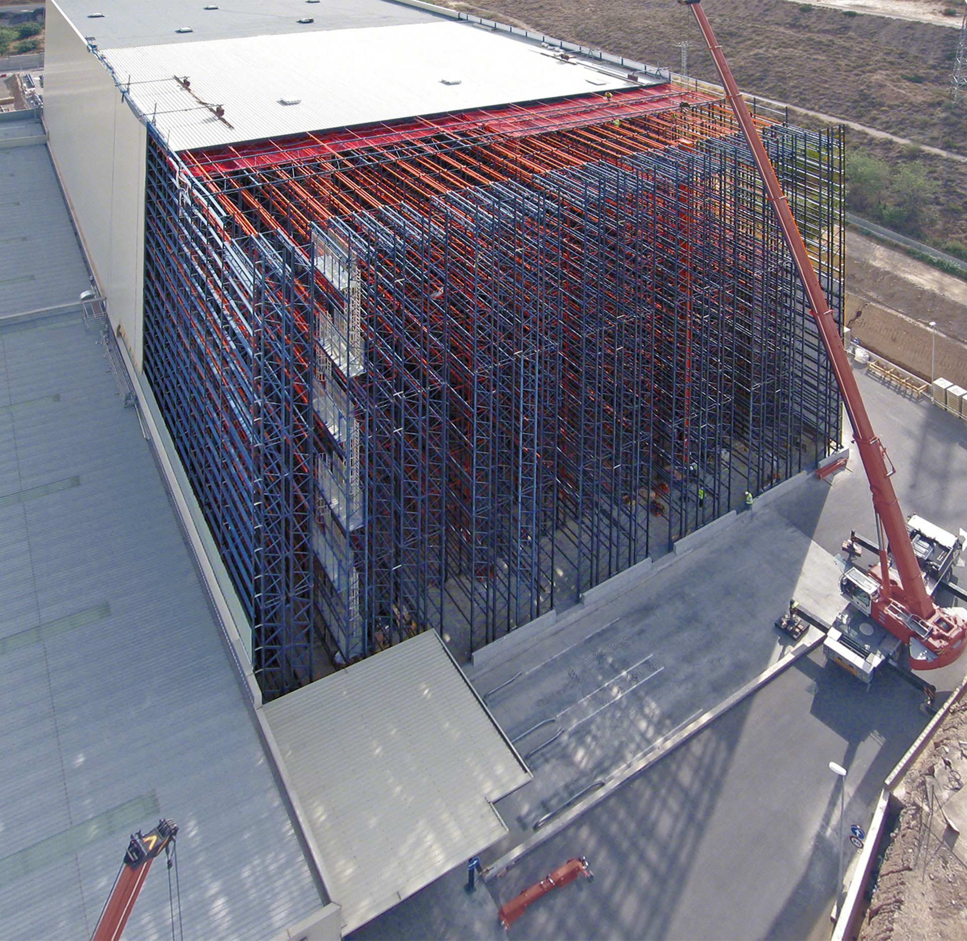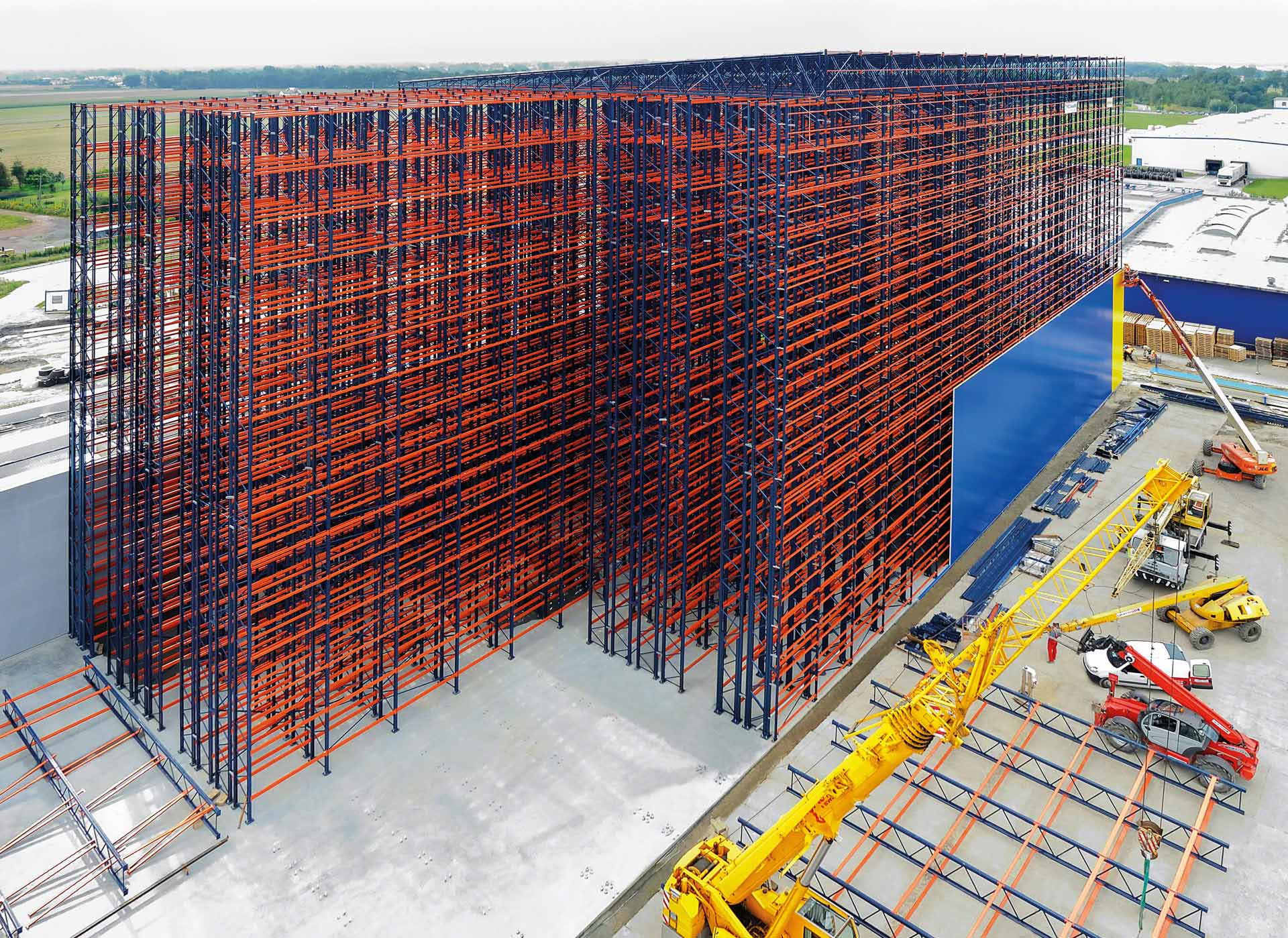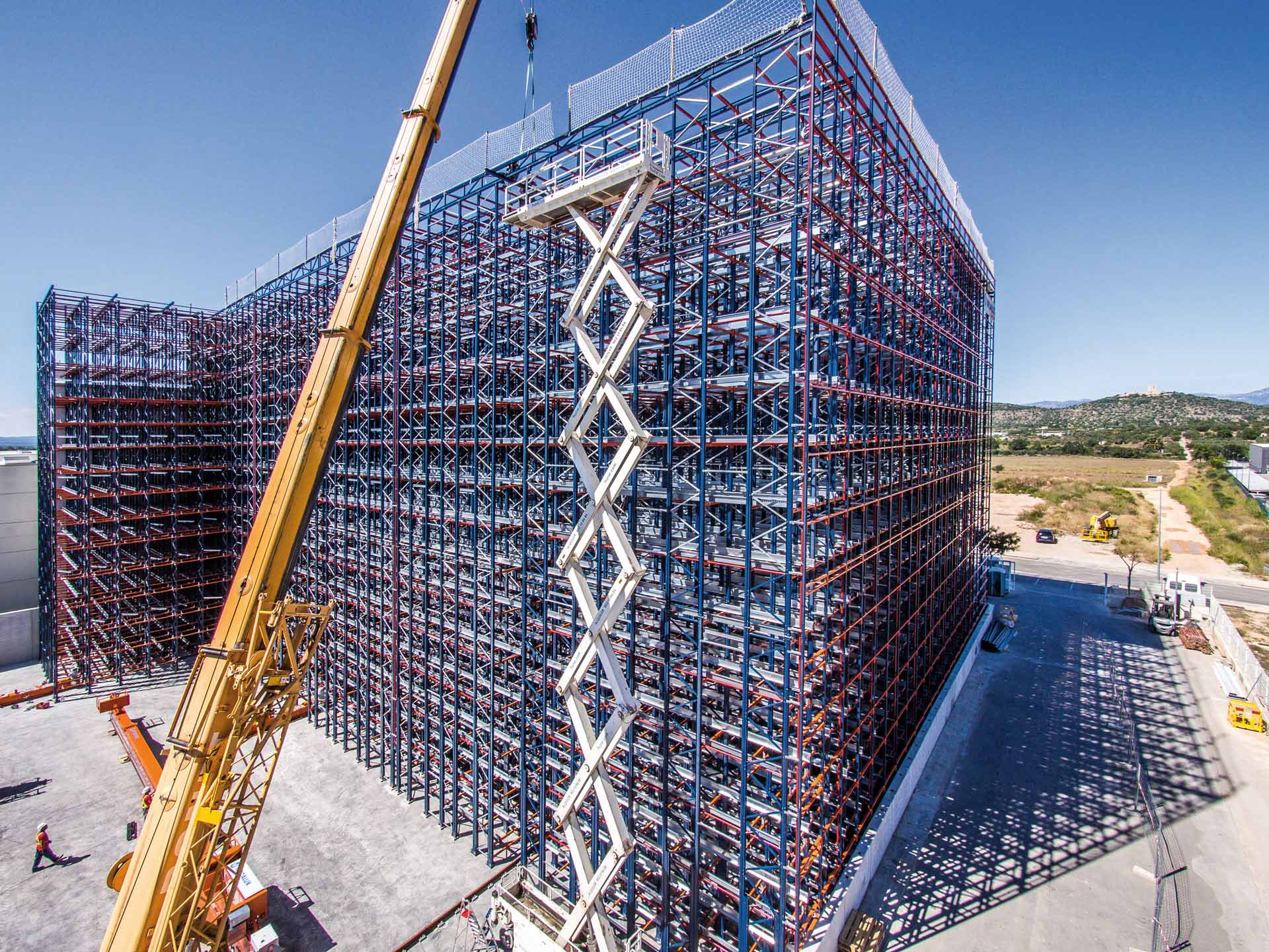 Het belangrijkste structurele onderdeel van een hoogbouwmagazijn zijn de stellingen zelf. Ze dragen niet alleen het gewicht van de opgeslagen goederen, maar ook de zij- en dakpanelen maar zijn ook bestand tegen externe invloeden, zoals de kracht van de wind. Daarom is het civiele werk minimaal, wat de montage versnelt en de kosten verlaagt in vergelijking met traditionele bouwsystemen.